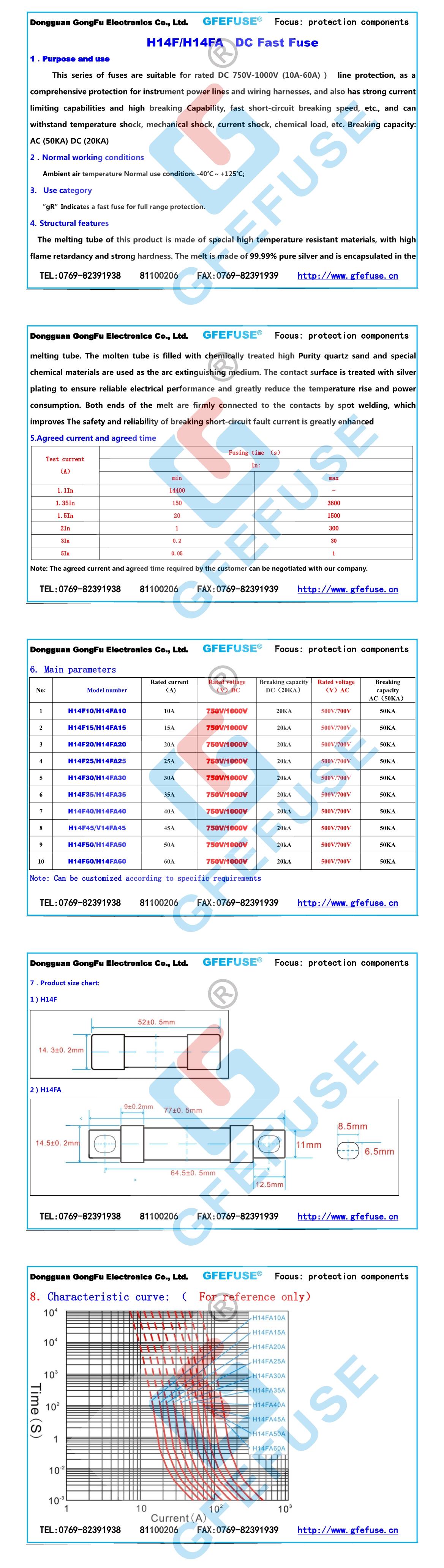 10A-60A/750V/1000V汽車保險絲(H14FA)