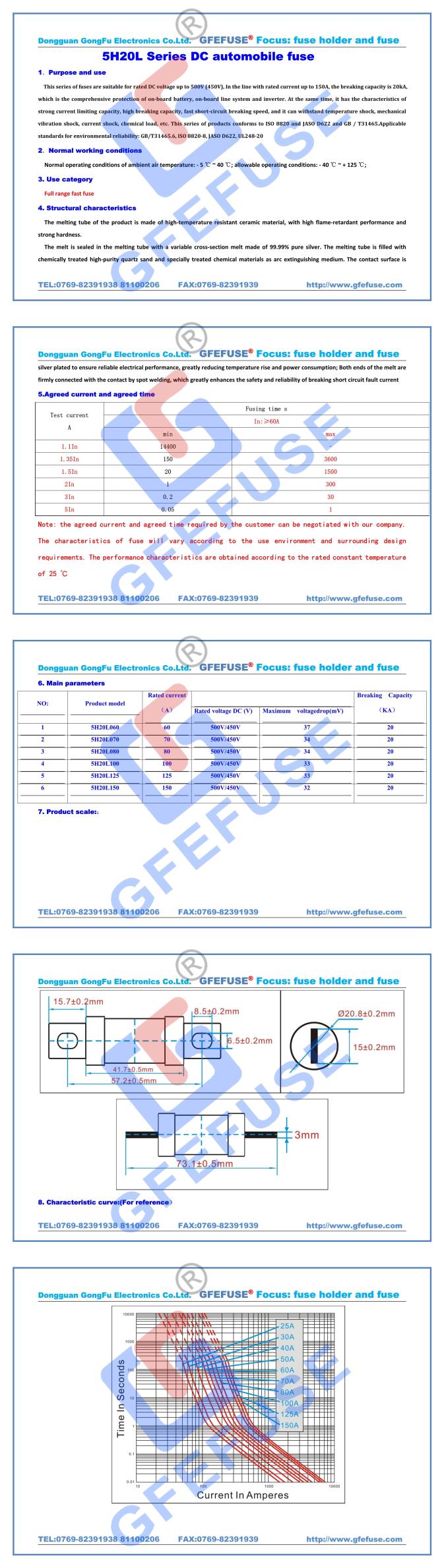 5H20L快速直流熔斷器(50A-150A)500V450V
