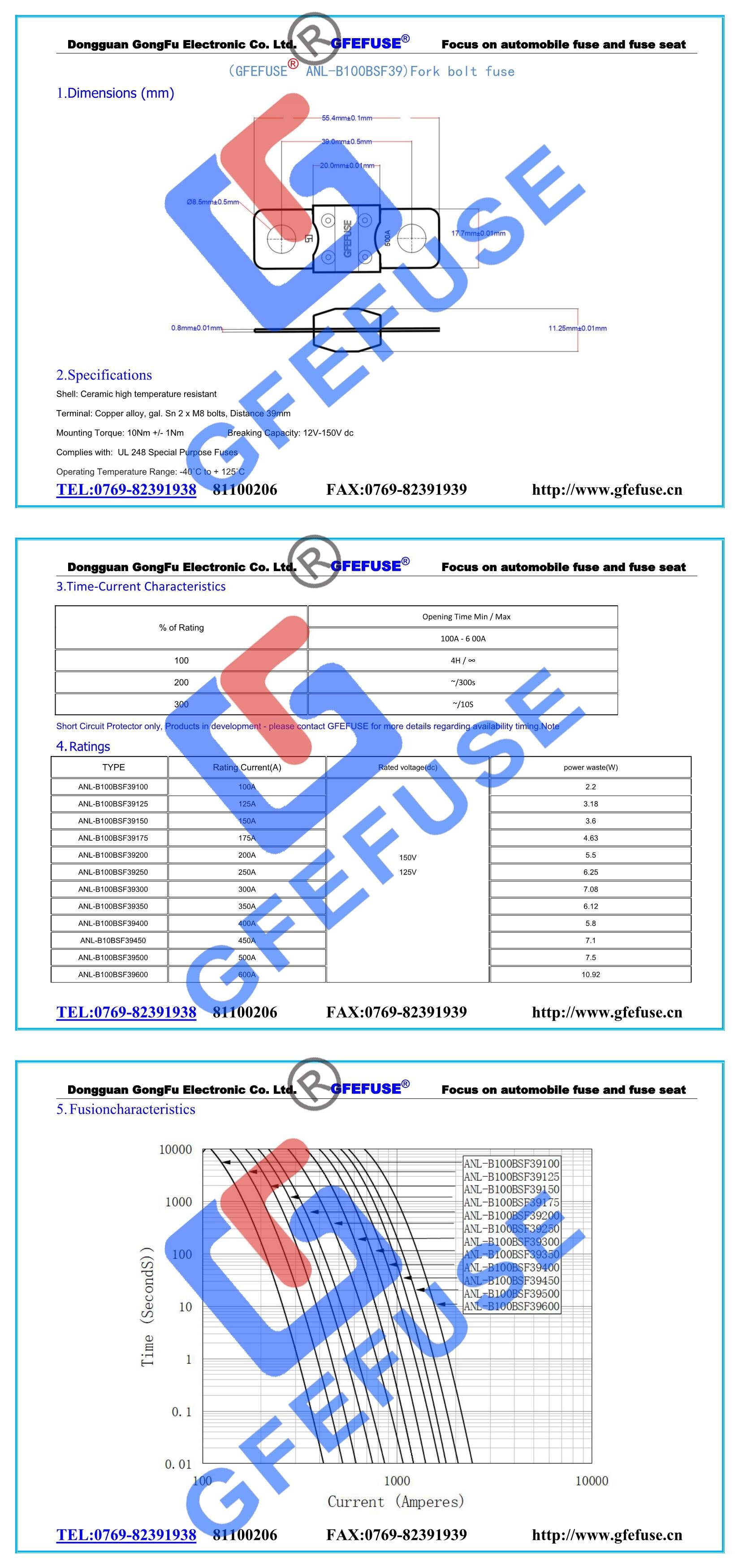 ANL-B100BSF39 100A-600A 125V150V陶瓷叉栓保險(xiǎn)絲